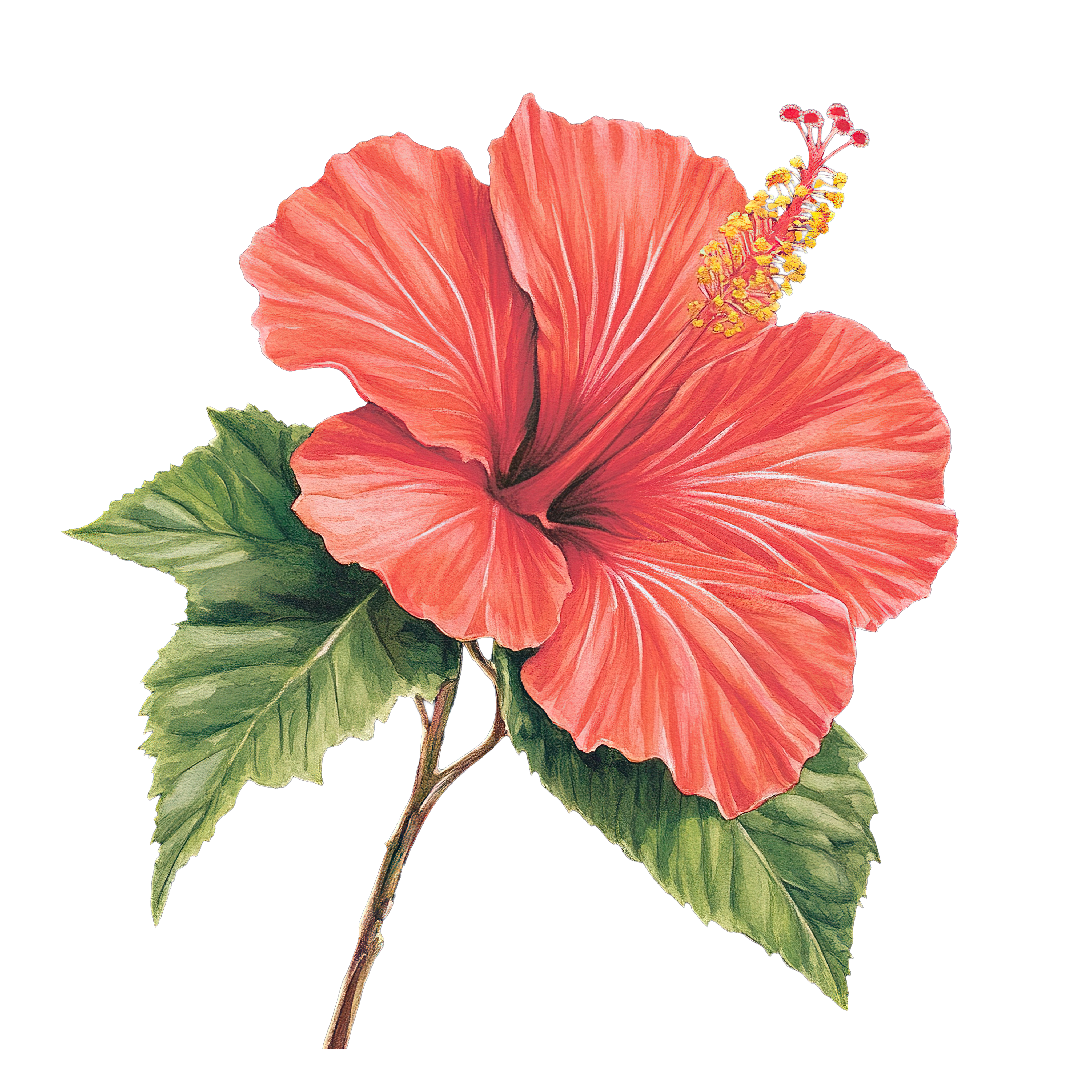Red Hibiscus Flower with Green Leaves and Stem Red hibiscus flower with detailed petals and green leavesDownload PNG ▼Download JPG ▼Related posts:Watercolor Illustration of a Detailed Autumn Oak LeafTall Glass of Pink Grapefruit Juice with Ice and SliceCartoon Mummy Character with Large Eyes Sitting DownWatercolor Branch of Red Hawthorn Berries with LeavesWatercolor Kiwi Slices with Detailed Seeds and TextureDetailed Illustration Of A Yellow AndPanna Cotta Dessert with Fresh Berries in Blue BowlHighland Cow with Santa Hat and Red Scarf IllustrationShiny Red Christmas Ornament with Gold Decorative PatternsAssorted Green Fruits and Berries with Fresh LeavesRed and Green Christmas Ornaments with Decorative BowsSnowy Cottage Decorated for Christmas with Wreaths and Holly