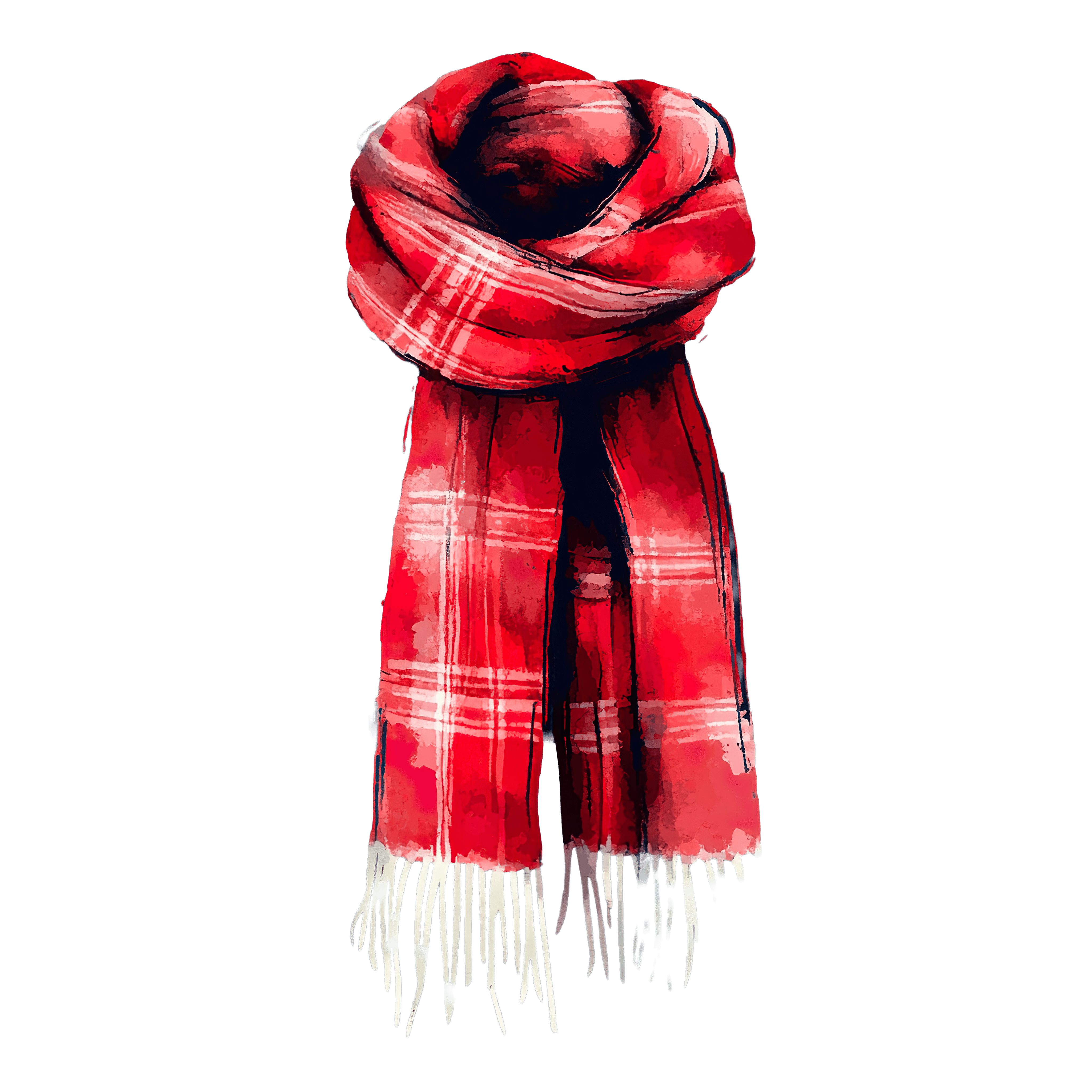 Red Plaid Scarf with Fringes on Black Background Red plaid scarf adorned with fringes and detailed fabric folds.Download PNG ▼Download JPG ▼Related posts:Peach Tart with Sliced Peaches and Mint LeavesCartoon deer with antlers in simplified illustrationFresh Daikon Radish with Leaves ClipartVibrant Butterfly Featuring Multicolored Rainbow WingsLush Green Apple and Leaves Clipart Art VectorButterfly With Vibrant Orange And Black Wing PatternsWatercolor Radish with Fresh Green LeavesIntricate Gingerbread Cookie Design with Red and Teal IcingWatercolor Turnip with Lush Green LeavesYellow and Orange Sun with Wavy Rays on Black BackgroundColorful Geometric Patterned Bell Pendant on Black BackgroundOrange bear clipart with colorful containers