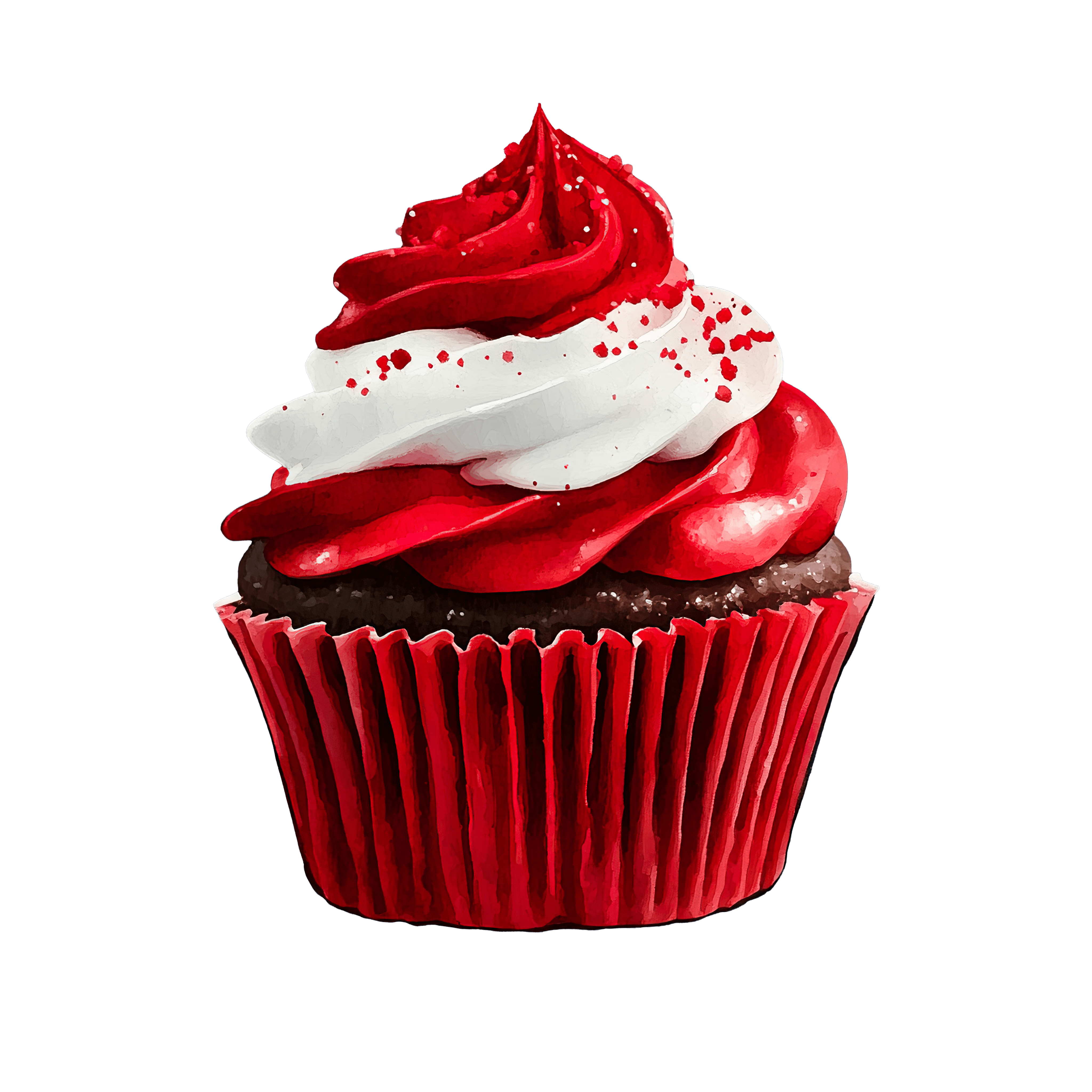 Red Velvet Cupcake with Swirled Frosting and Sprinkles Red velvet cupcake topped with red and white swirled frosting.Download PNG ▼Download JPG ▼Related posts:Santa Claus Portrait in Red Suit and Hat IllustrationTraditional Italian Panettone with Candied Fruits and Berries IllustrationMatcha Mousse Dessert in Glass with Strawberry ToppingWatercolor Okra Pods and Slices ArtPurple striped hippo with three yellow ducklingsWatercolor art of Whole and Sliced Guava with LeavesSliced Sponge Cake with Golden Brown Crust dessert bakery food sweet clipartFresh Green Broccoli Vector Art for Printable Healthy Food ClipartHighland Cow Wearing Santa Hat for Christmas Themed IllustrationSpicy Red Chili Pepper Vector Art with Green StemWatercolor Onion with Orange and Yellow Hues vegetable food clipart vector artRed Fire Truck Clipart with Detailed Equipment and Design Elements