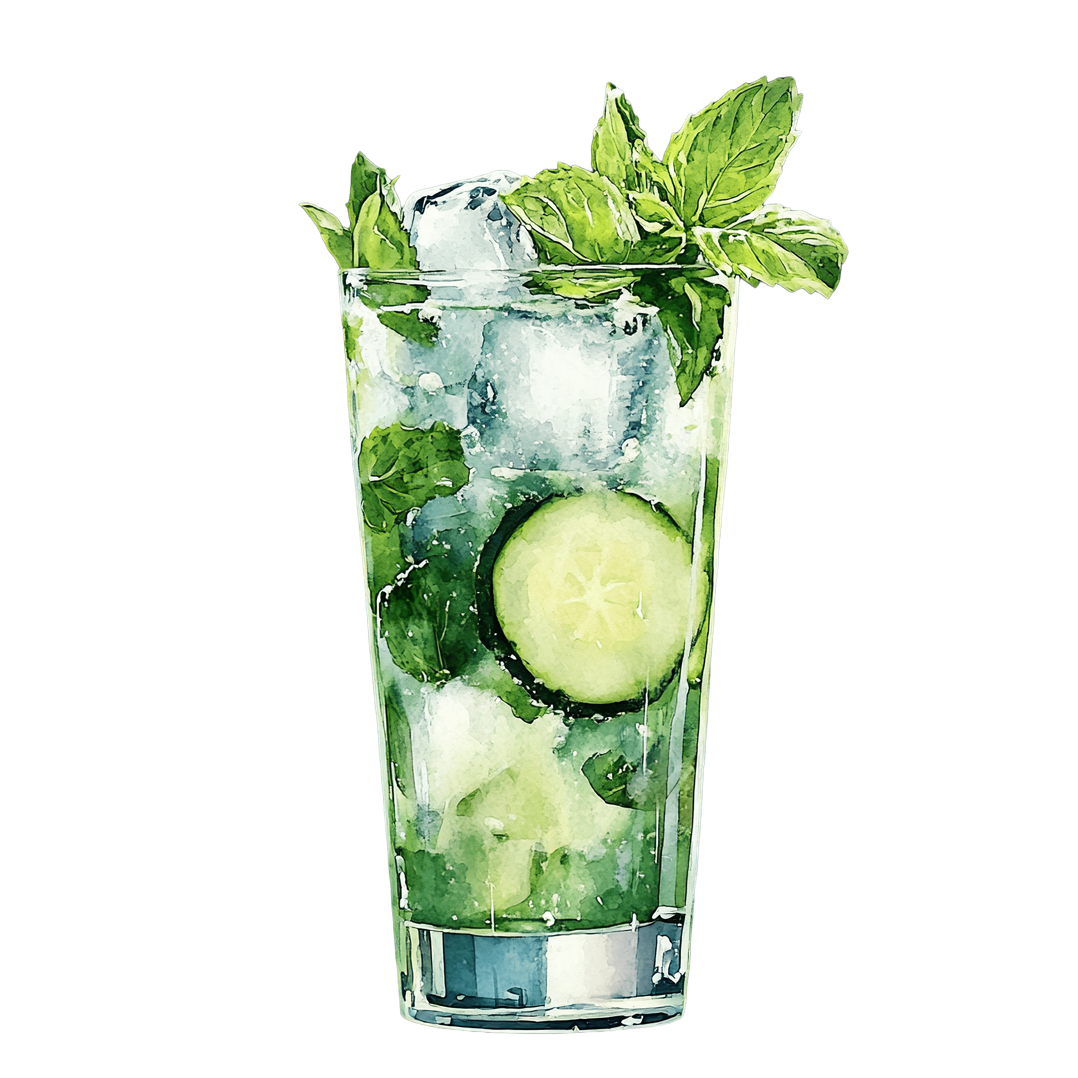 Refreshing Mojito Cocktail with Mint and Cucumber Slices Mojito cocktail in a glass with mint leaves and cucumber slices.Download PNG ▼Download JPG ▼Related posts:Purple And Pink Butterfly With Sparkling Wings IllustrationHibiscus Tea with Red Flowers and Green LeavesPink Carnation Flower with Green Leaves on Black BackgroundChinchilla Running Across Sandy Ground in Clipart StyleWhite Lilies with Green Leaves in Botanical ClipartMojito Drink with Lime and MintCheesecake Slices Topped with Fresh Figs and BerriesSpicy Red Chili Pepper Vector Art with Green StemBowl of Cottage Cheese with Spoon in Blue DishHot Mulled Wine with Cinnamon Sticks and Orange SliceTwo Kittens with Christmas Gift and Holly Leaves IllustrationRambutan Fruit with Leaves and Halved Section red spiky tropical clipart vector