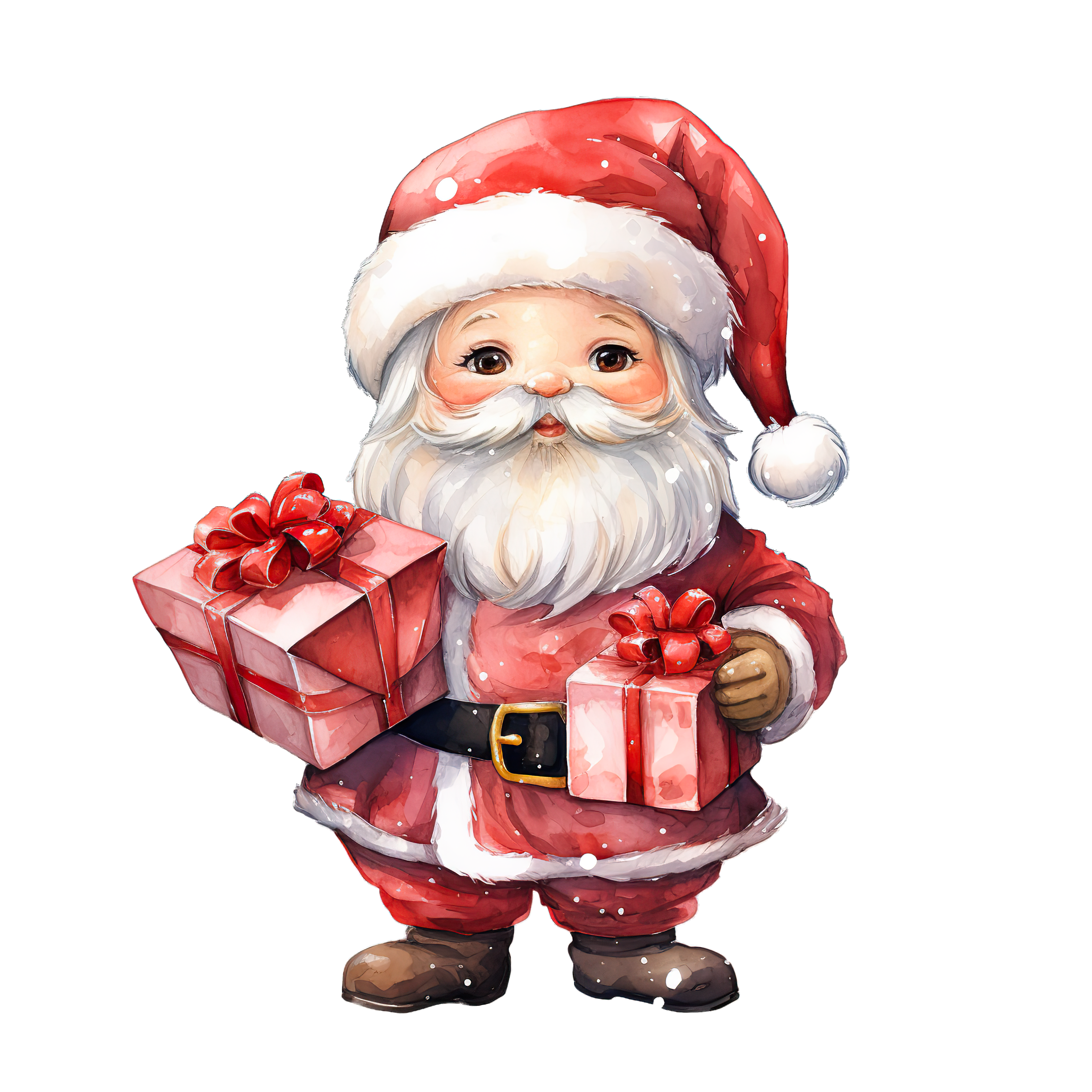 Santa Claus Holding Red Gift Boxes in Festive Attire Illustration Santa Claus in traditional red attire holding two red wrapped gift boxes.Download PNG ▼Download JPG ▼Related posts:Ornate Floral Mandala with Intricate Leaf and Petal DesignsTurtle wearing a red and green festive hatWatercolor Illustration of Yellow Crocus Flowers with Green LeavesRed Velvet Cupcake with Swirled Pink Frosting dessert sweet treat bakery pastryOrnate Red Christmas Ornament with Gold Details and LoopDetailed White Peony Flower with Green Leaves Clipart IllustrationWatercolor Butterfly Illustration With Orange And Black PatternsDetailed Green Leafy Plant with VeinsVictorian Woman in Festive Red Hat with Holly DecorationMulticolor Gradient Heart Shape Composed of Small Particle DotsFestive Gingerbread House Village with Lollipop DecorationsStrawberry Delight Cupcake in Pink Frosting Clipart