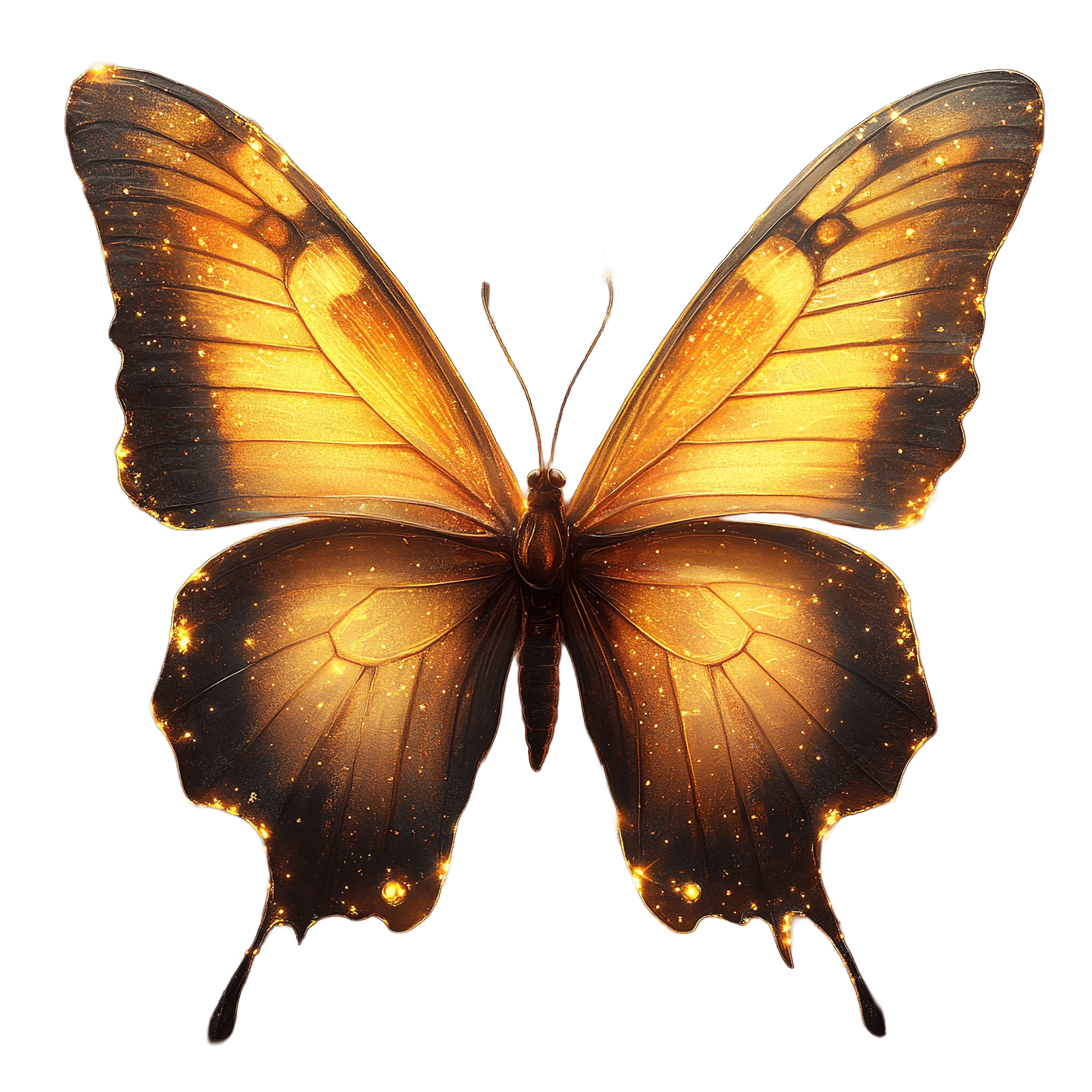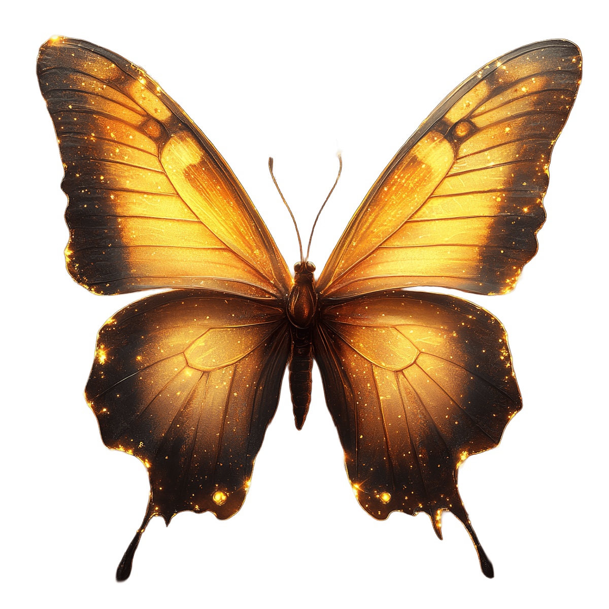 Shimmering Golden Butterfly With Glittery Wings Golden butterfly with sparkling wings displayed against a black background.Download PNG ▼Download JPG ▼Related posts:Chocolate Drip Cake with Cherries and Whipped Cream ToppingStack of Colorful Books in Artistic Watercolor StyleVictorian Woman in Red Christmas Outfit with Festive HatBlueberry Muffins with Fresh Leaves on Top food drink dessert watercolor clipartRed Apple with Stem in Watercolor Style fruit clipart vector art printableRadiant Gold Sun with Stylized Wavy Rays on BlackStack of Colorful Books with Polka Dot CoversMulticolored Heart-Shaped Faceted Gem Clipart on BlackOtter in Yellow Boots Clipart IllustrationOrange tiger-like creature with antlersWatercolor Green Grass Blades in Vertical Arrangement plants nature clipart vector artVibrant Butterfly With Multicolored Wings On Clipart X59