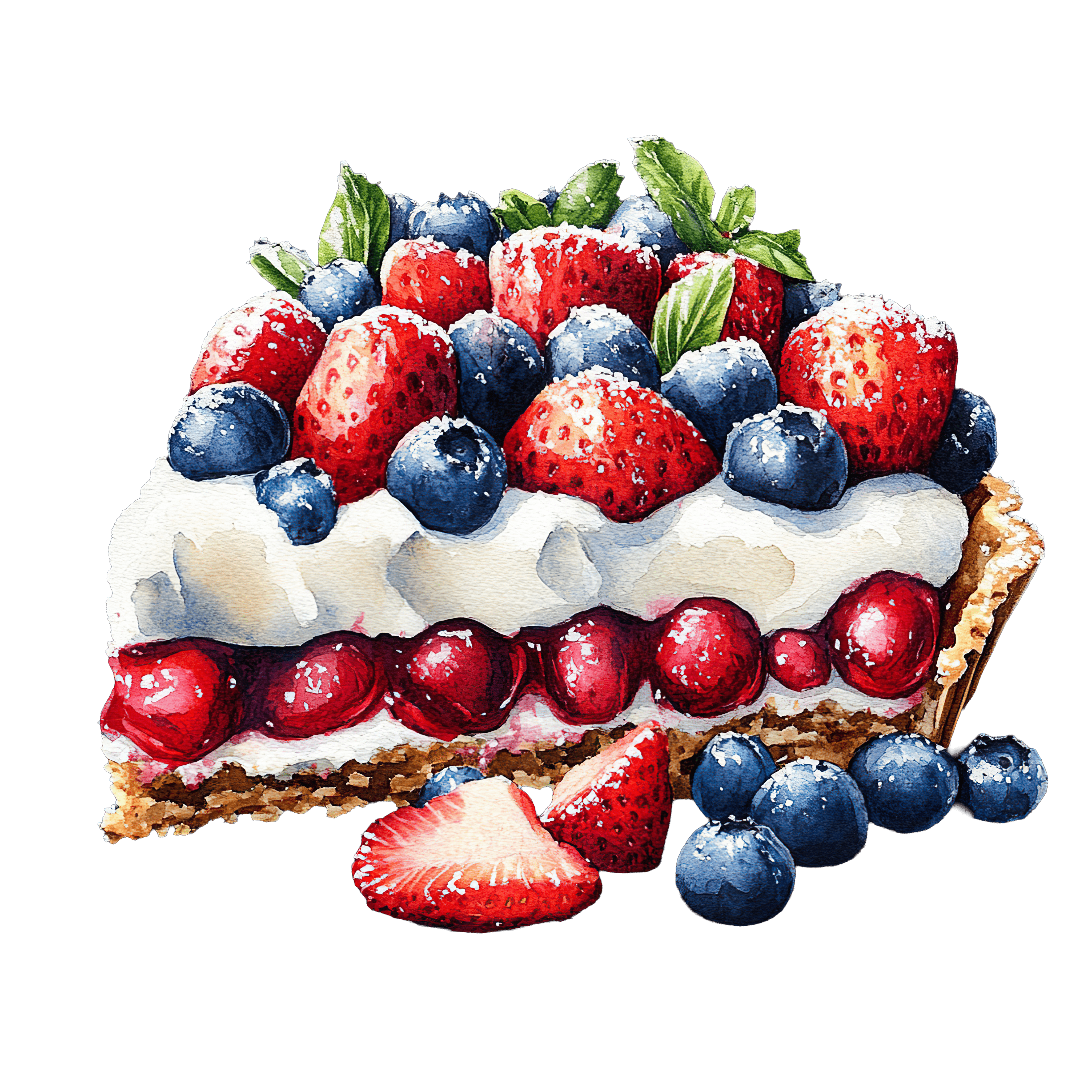 Slice of Berry Tart with Fresh Strawberries and Blueberries Slice of berry tart topped with strawberries and blueberries on cream.Download PNG ▼Download JPG ▼Related posts:Porcupine Clipart with Detailed Quills and Dark EyesPine Cones with Branches and Needles on Transparent BackgroundSloth on Branch with Green Leaves ClipartThree Vibrant Burning Candles with Dripping Wax in Dark SettingSliced Kiwi Fruit with Detailed Texture and SeedsThree ripe purple cherries with green leaf on stemVibrant Blue And Yellow Butterfly With Detailed WingsPurple Butterfly With Glowing Heart Patterns On WingsWatercolor Fennel Bulb with Lush Green FrondsCluster of Fresh Tamarind Pods with Brown ShellsColorful Orange And Blue Winged Butterfly IllustrationNaranjilla Fruit with Leaves and Sliced Half in Clipart
