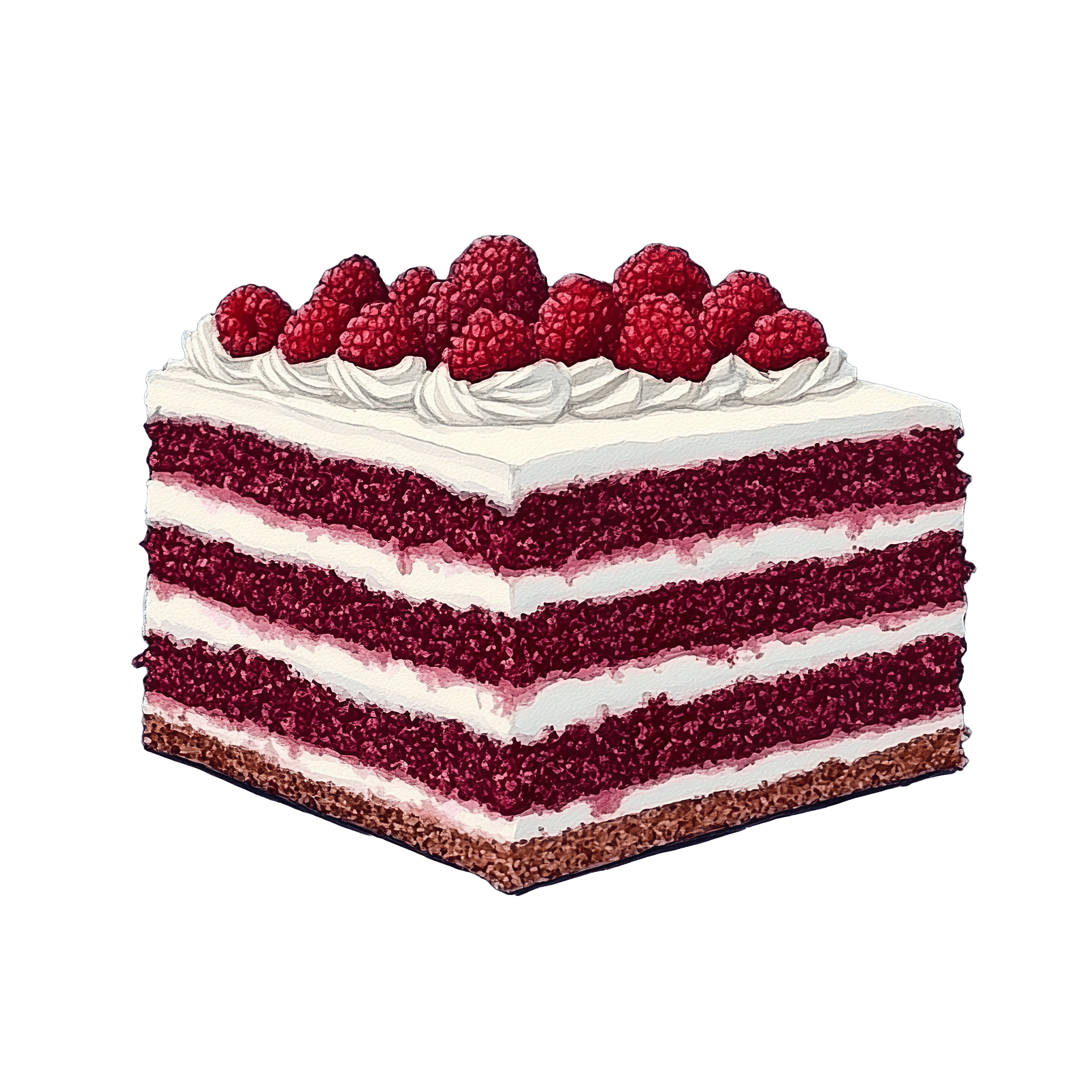 Slice of Red Velvet Cake with Cream and Raspberries Red velvet cake slice topped with cream and fresh raspberries.Download PNG ▼Download JPG ▼Related posts:Cartoon donkey playing soccer with a ballCluster of Purple Blackberries with Green Leaves fruit clipart vector art printableStack of Colorful Books with Teacup on Top IllustrationColorful Kayak in Detailed Illustration with Black BackgroundWatercolor Passion Fruits with Halved and Whole ViewsRed Leather Wallet Clipart with Metal Button ClosurePeacock Clipart with Decorative ElementsBouquet of Red Tulips with Green Leaves on BlackVector illustration of a pelican with large beakWatercolor Whole and Sliced Fig Fruit ArtStrawberry Smoothie in Tall Glass with Straw drink beverage pink fruit clipartPink Rose with Green Leaves in Detailed Clipart Illustration