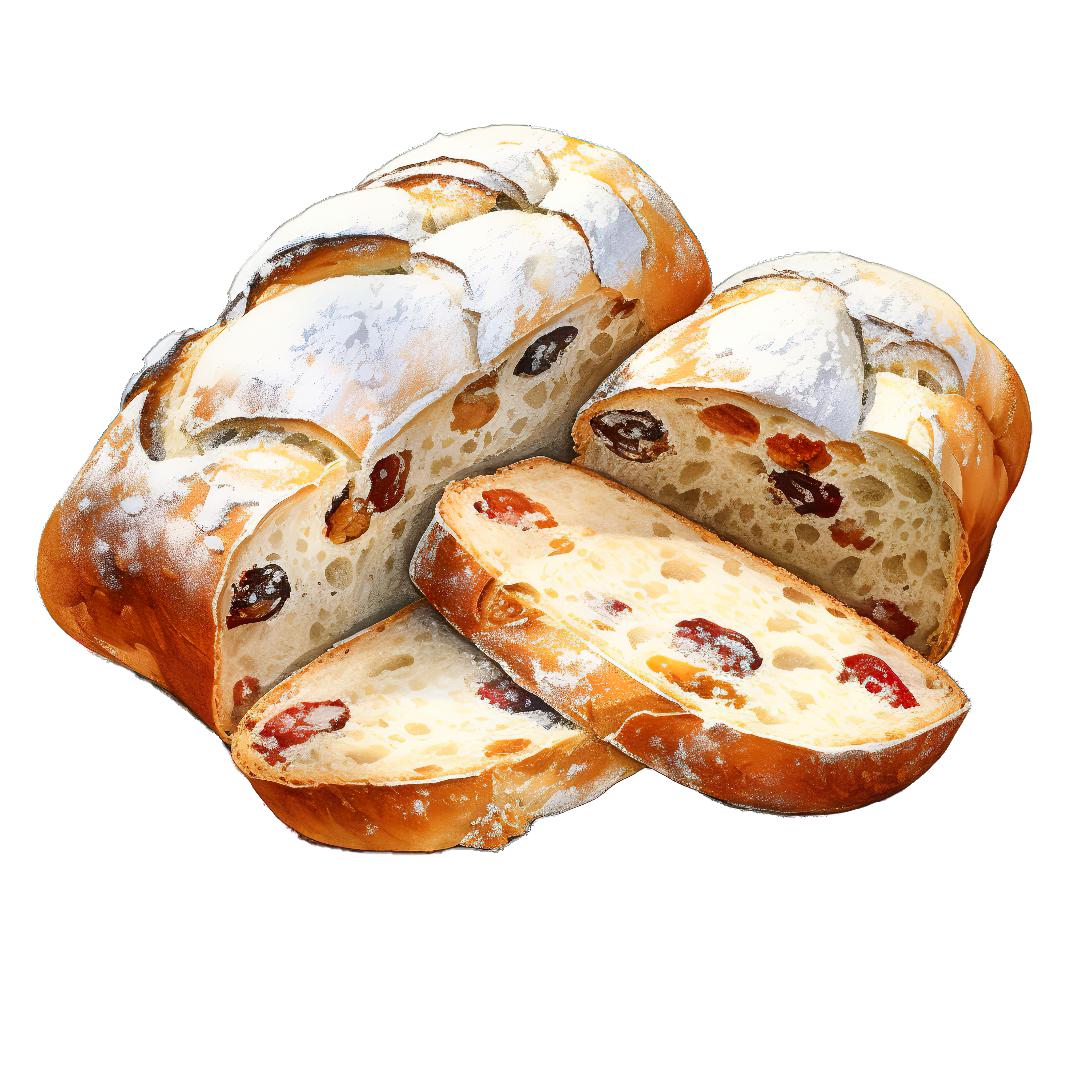 Sliced Braided Fruit Bread with Sugar Dusting on Top Sliced braided fruit bread with raisins and a sugar dusting on top.Download PNG ▼Download JPG ▼Related posts:Holly Branch with Glossy Leaves and Red Berries IllustrationColorful Butterfly Showcasing Iridescent Wings In FlightWatercolor Broccoli Clipart with Detailed Green Florets vegetable food healthy vector artGingerbread Man Cookie with Red Bow and Buttons ClipartCartoon meerkat with large eyes by a treeIntricate Snowflake-Shaped Gingerbread Cookie with Red and Green IcingOrange Creamsicle Float with Mint and StrawCartoon Lamb Peeking Behind Wooden Fence IllustrationPink Frosted Donut with Colorful Sprinkles Clipart frosting food dessert vector artPenguin Wearing Santa Hat and Scarf on Black BackgroundColorful Butterfly With Vibrant Red And Yellow WingsBlue Butterfly Illustration With Detailed Wing Patterns Insect