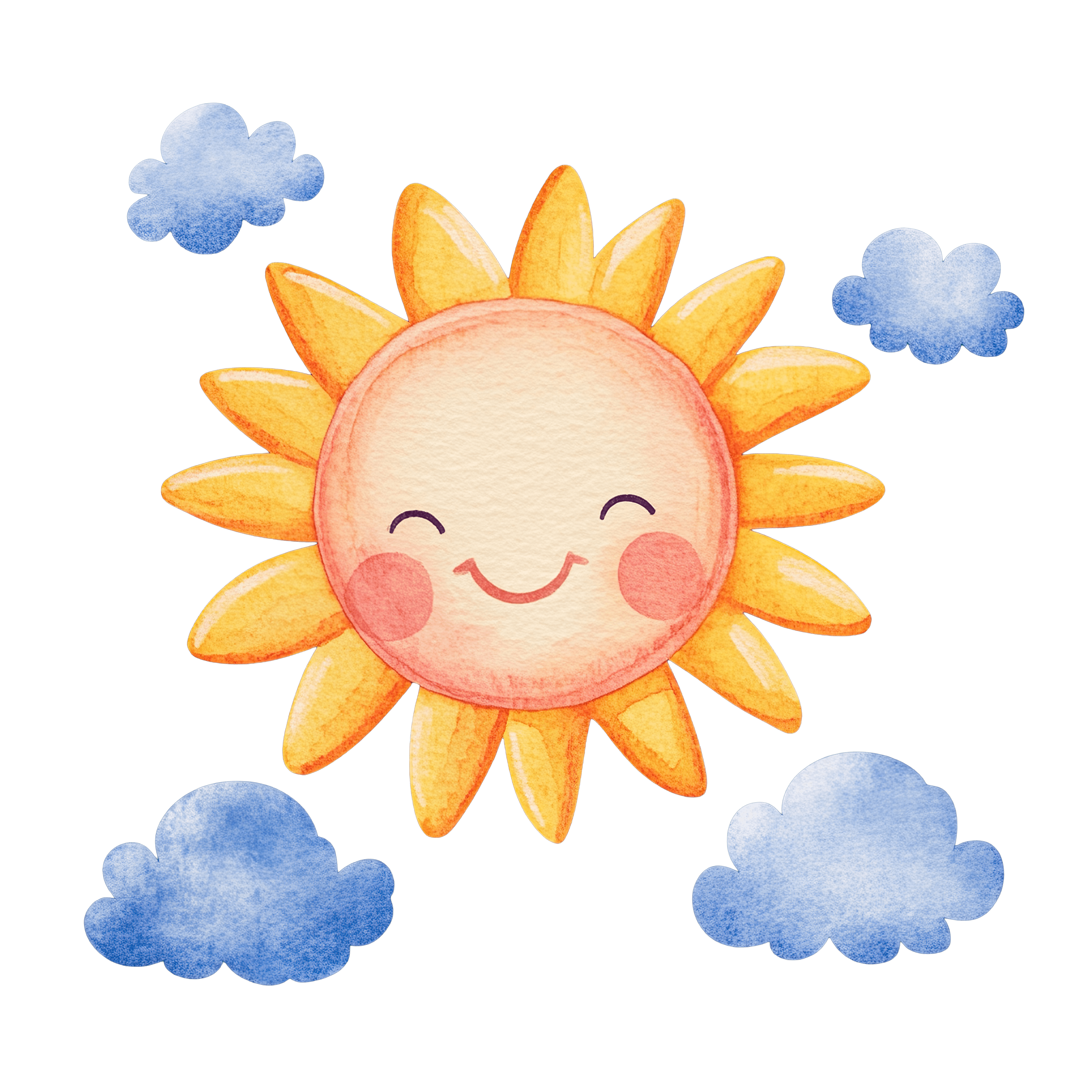 Smiling Sun with Yellow Rays and Small Blue Clouds Smiling sun with yellow rays accompanied by small blue clouds.Download PNG ▼Download JPG ▼Related posts:Christmas Stocking with Red Bow and Holly DecorationHedgehog Holding Red Apple Clipart IllustrationDetailed Purple Butterfly Wings With Intricate PatternsVibrant Purple And Blue Butterfly Intricate Illustration ArtVibrant Green And Yellow Butterfly Showcasing Intricate WingCassava Roots Vector Art ClipartWatercolor Grapefruit Slice with Vibrant Pink Segments fruit citrus clipart vector artWoman with Festive Red Bow and Christmas DecorationsBlueberry Muffin with Fresh Berries in Paper LinerBlackberry Cheesecake Slice with Berry ToppingVintage Yellow Bus Illustration with Large Front HeadlightsHeart Shape Filled With White Daisies On Black
