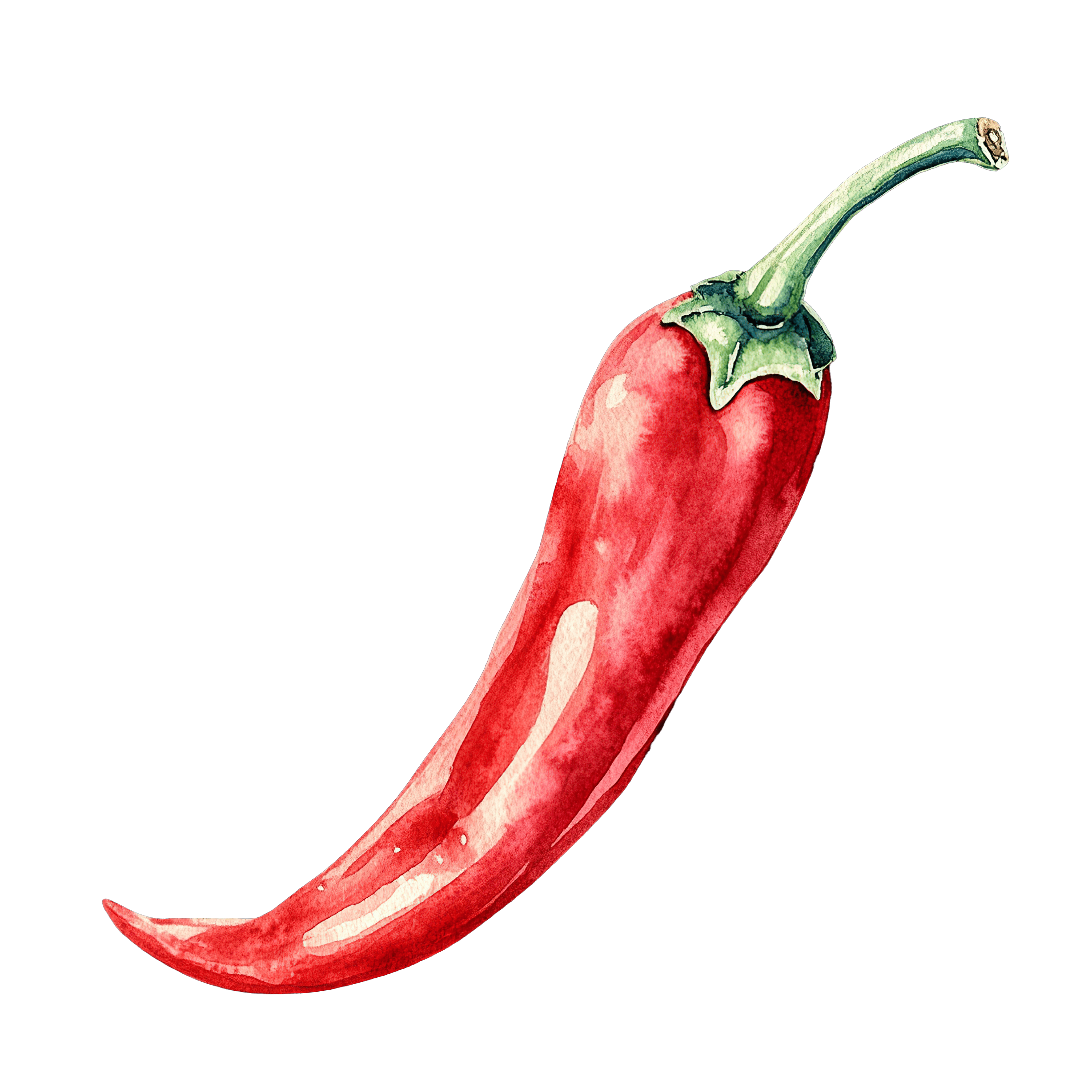 Spicy Red Chili Pepper Mascot with Green Stem Vector Art A red chili pepper with a green stem, rendered in a watercolor style.Download PNG ▼Download JPG ▼Related posts:Watercolor Watermelons with Sliced Red Flesh and SeedsDessert Cup with Berries and Whipped Cream ToppingWatercolor Sun Face with Radiant Orange and Yellow RaysElegant Couple Dressed in Formal Attire at DanceVibrant Watercolor Dragon Fruit Slice with SeedsWatercolor Quince Fruits with Leaves and Sliced HalvesVibrant Yellow And Green Butterfly With Detailed WingsWatercolor Radish with Fresh Green LeavesYellow Bulldozer with Large Blade on Black BackgroundTall Glass of Green Smoothie with Mint GarnishMountain Bike with Thick Tires and Light Blue FrameWatercolor Illustration of Olive Branch with Leaves and Fruits