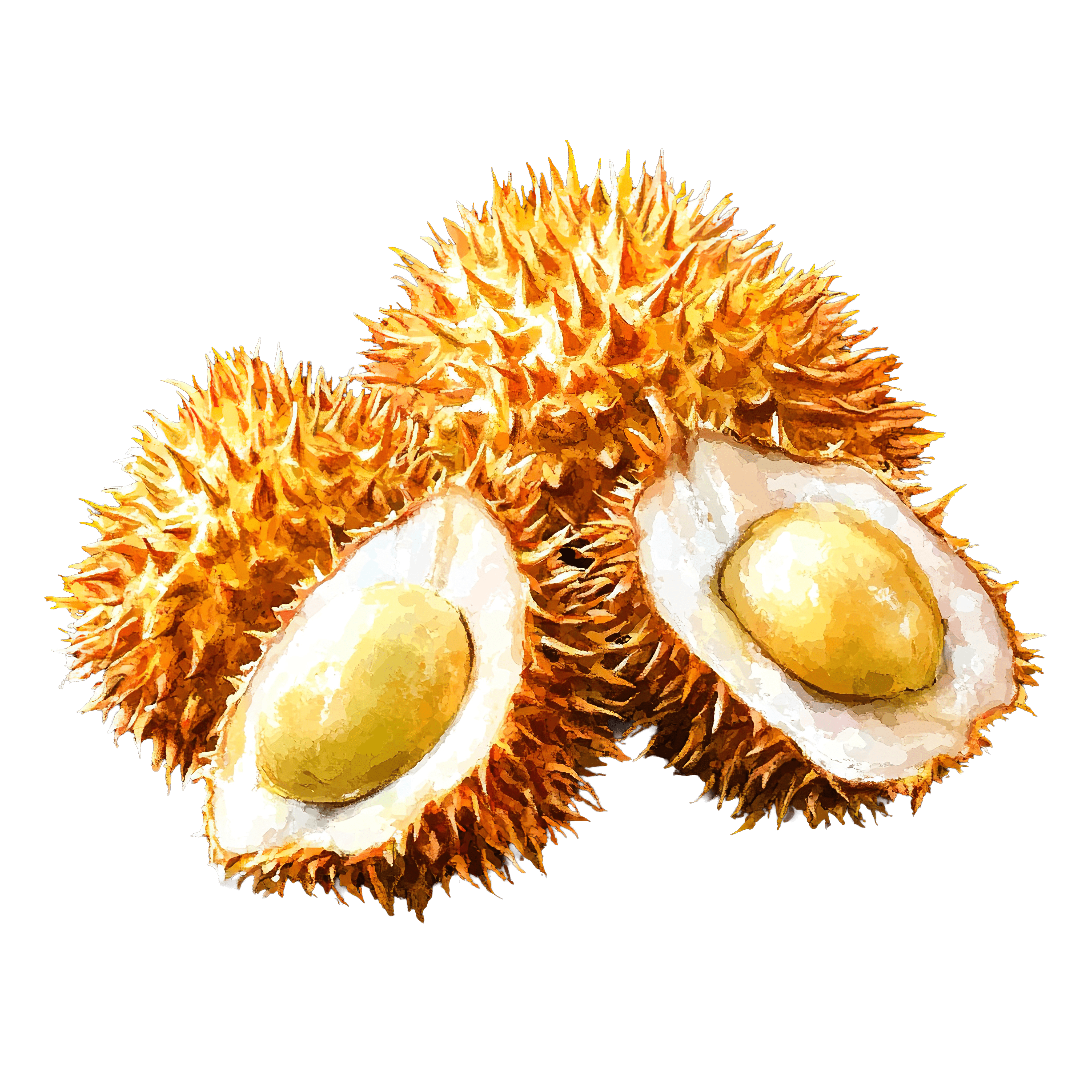 Spiky Durian Fruit with Opened Sections Displaying Seeds Spiky durian fruit with sections opened to reveal seeds.Download PNG ▼Download JPG ▼Related posts:Cartoon Police Officer in Uniform with Badge and HatWhite and Yellow Daffodil Flowers in Detailed Vector IllustrationChocolate Cake with Strawberries on a White PlateWatercolor Illustration of Pink Bougainvillea Flowers with Green LeavesRed Christmas Ornament with Gold Decorative Pattern DesignChocolate brownie topped with walnutsGolden Crust Egg Tart Vector Art DessertChild Surrounded by Festive Poinsettia and Holly LeavesYellow Lily Flowers with Detailed Petals botanical vibrant nature clipart vector artThree Red Mushrooms with Green Moss on Black BackgroundFestive Lantern with Red Poinsettias and Holly BerriesBlue And Pink Butterfly With Glittering Wing Patterns