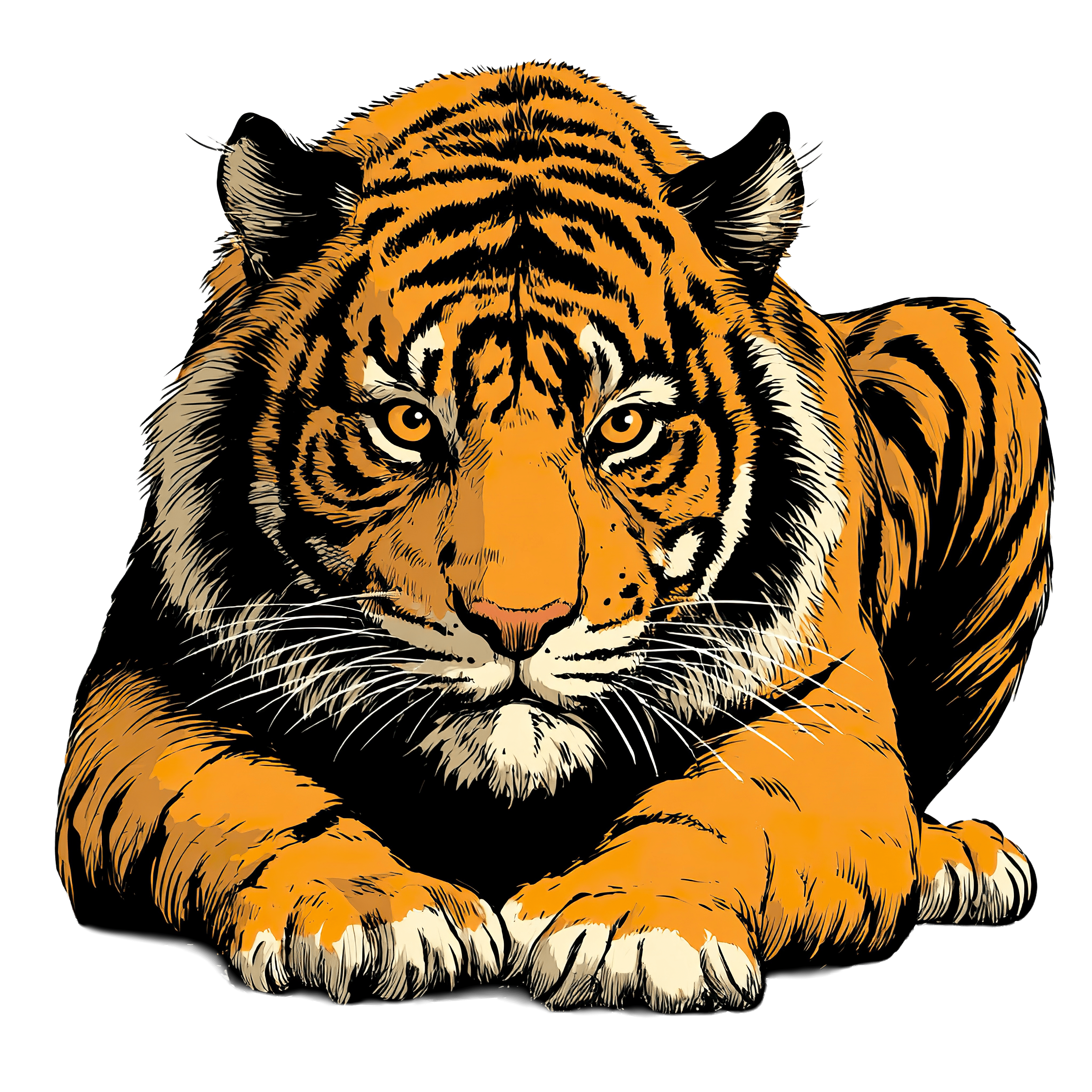 Striped Tiger Gaze Illustration Illustrated tiger with prominent stripes and a direct gaze.Download PNG ▼Download JPG ▼Related posts:Cute Blue Whale Clipart Wearing Santa HatGolden Retriever Puppy with Red Bow and Holiday OrnamentBrown sheep illustration with curly wool detailsIntricate Mandala Snowflake with Pine Elements in Red and GreenWhite bird with orange beak and feetCoconut halves with striped straw for tropical beverageIntricate Christmas Mandala with Red and Green Leaves IllustrationPortrait of a Woman with Red Hair and Large Bow TieWax Candle with Holly Leaves and Red Berries IllustrationPurple Hippo Clipart Illustration in Cartoon StyleDetailed Butterfly Illustration With Blue And Gold AccentsSanta Claus Holding Gift Box in Red and White Outfit
