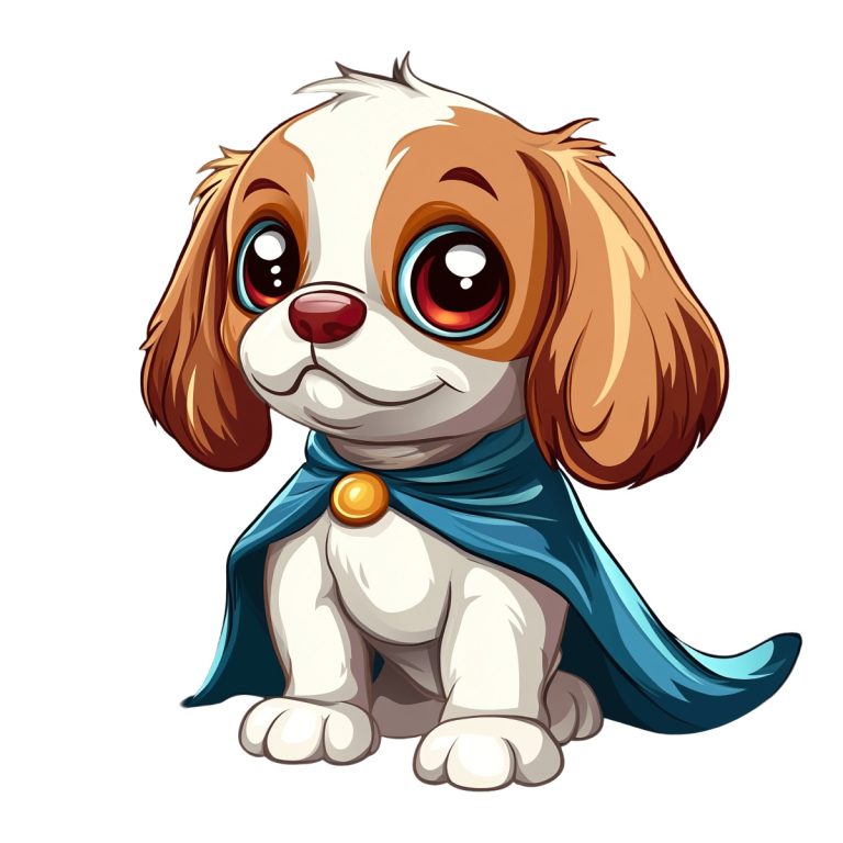 Cartoon Dog Wearing a Black Superhero Cape animal vector art clipart mascot