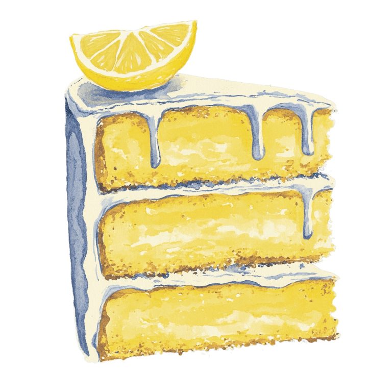 Delicious Lemon Cake Slice Topped with White Icing and Fresh Lemon Wedge