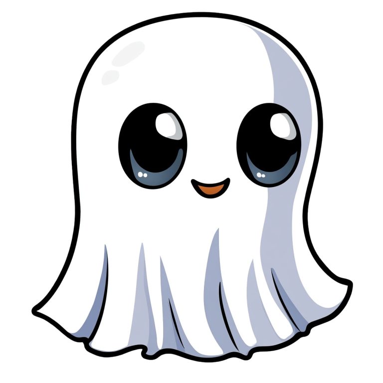Cartoon Ghost with Big Eyes and Expression holiday halloween smiling white clipart