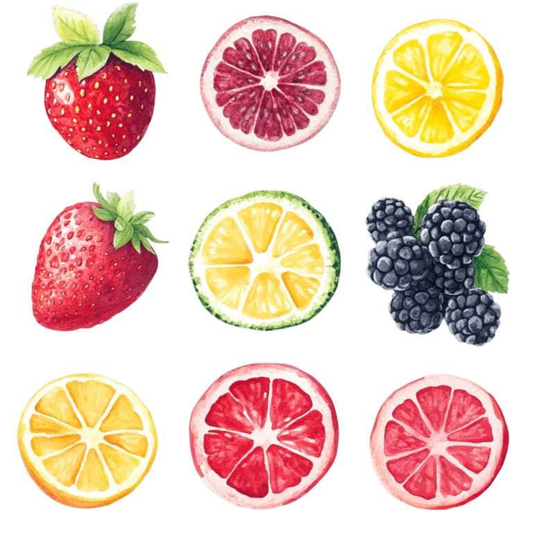 Watercolor Fruit Collection Featuring Citrus and Berries on Black Watercolor fruits including citrus slices and … Read more
