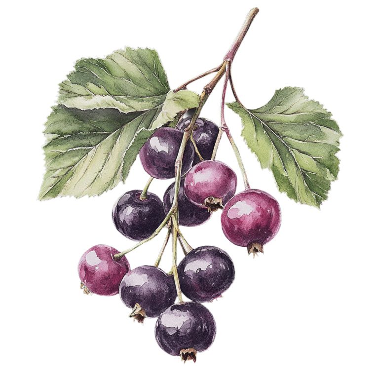 Branch of Blackcurrants with Lush Green Leaves