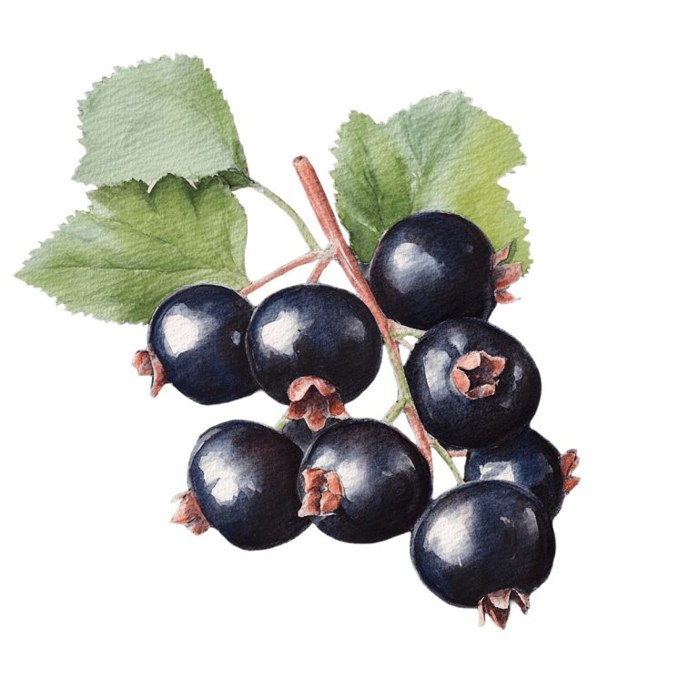 Blackcurrant Berries with Green Leaves on Branch fruit food drink clipart vector