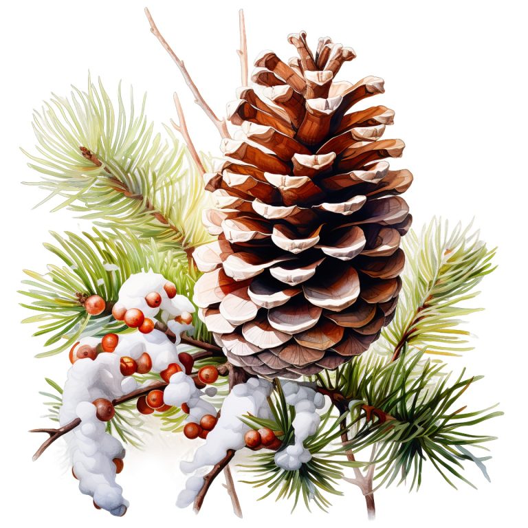 Pine Cone and Evergreen Branches with Snow and Berries Pine cone surrounded by evergreen branches, … Read more