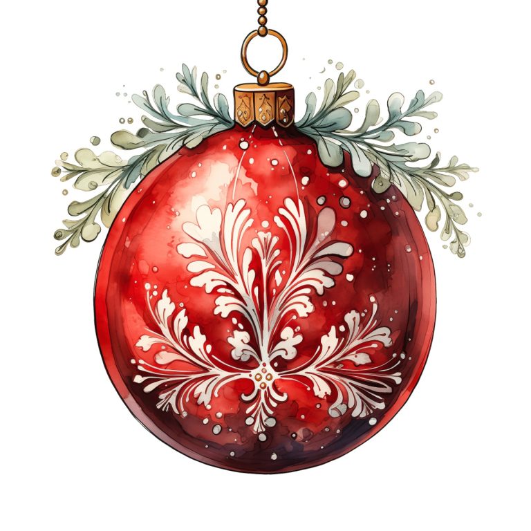 Red Christmas Ornament with Pine Branches and Decorative Design