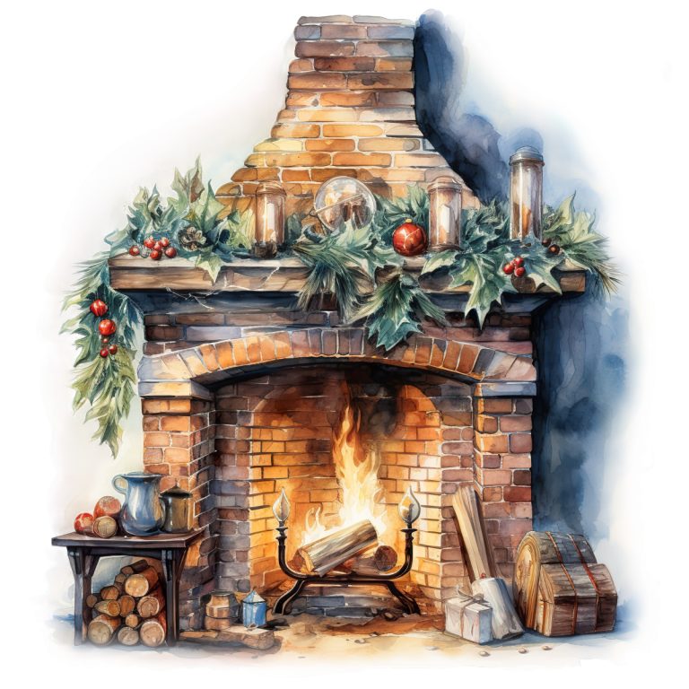 Festive Christmas Fireplace with Garland and Pine Decorations
