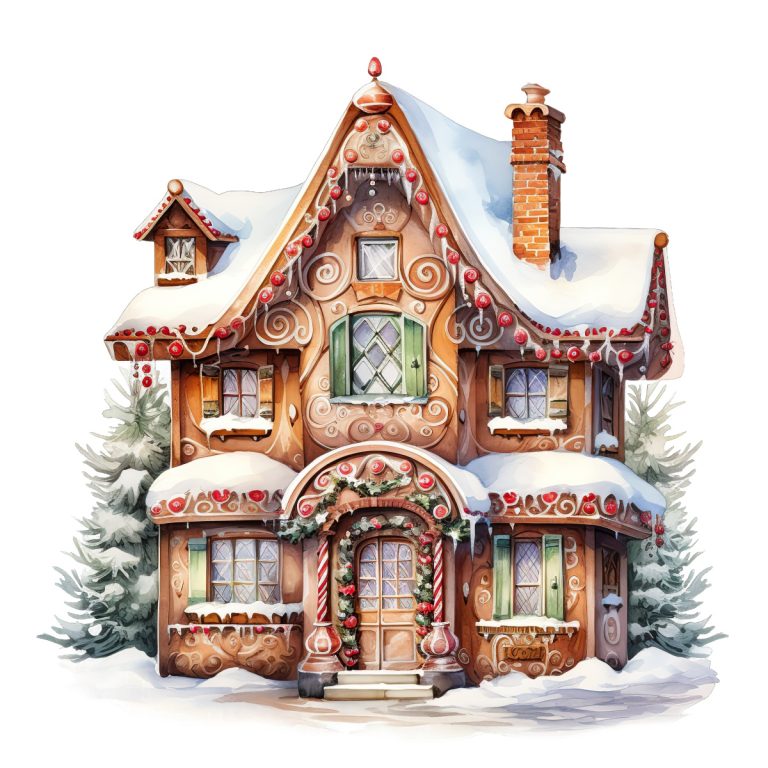 Gingerbread House with Snow and Christmas Decorations Clipart