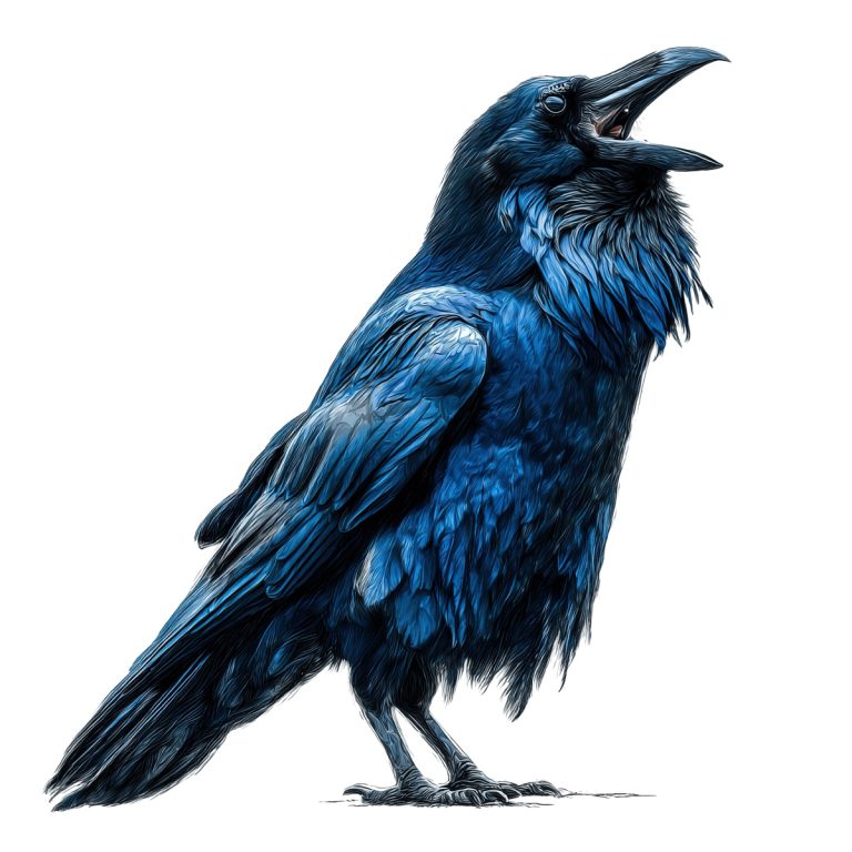 Detailed, blue-feathered raven with an open … Read more