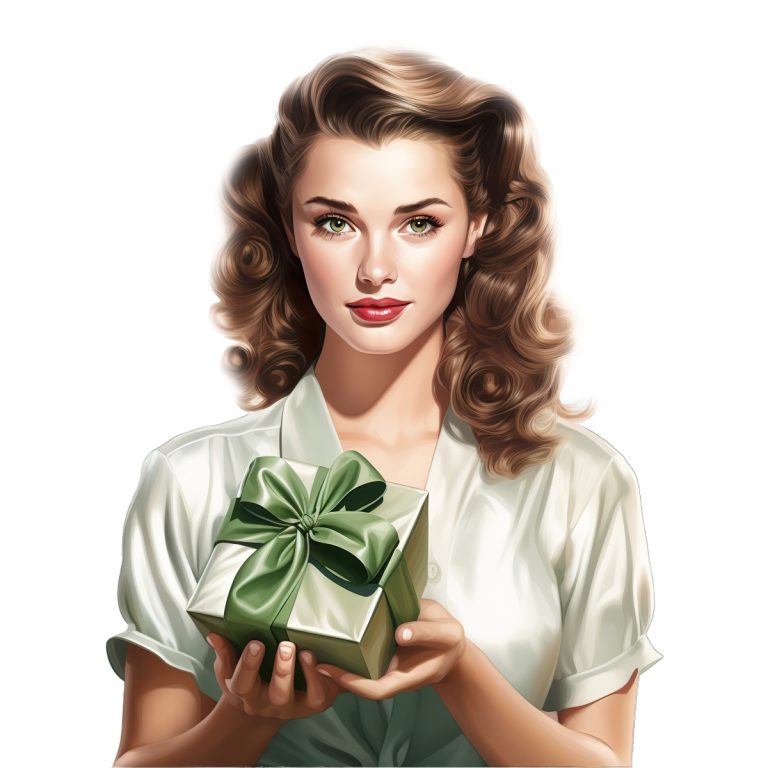 Woman Holding Gift Box with Ribbon in Retro Style Illustration