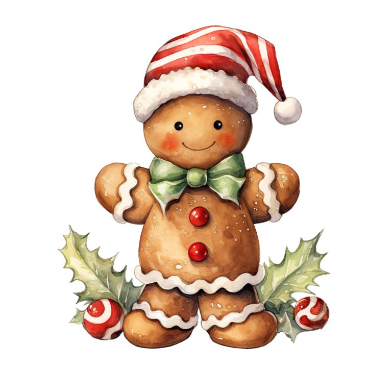 Gingerbread Man with Christmas Hat and Holly Decorations Gingerbread man in striped hat with … Read more