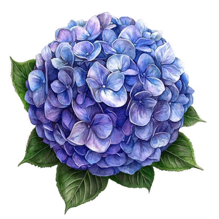 Detailed Illustration of a Vibrant Purple Hydrangea with Green Leaves Vibrant purple hydrangea flower with lush … Read more