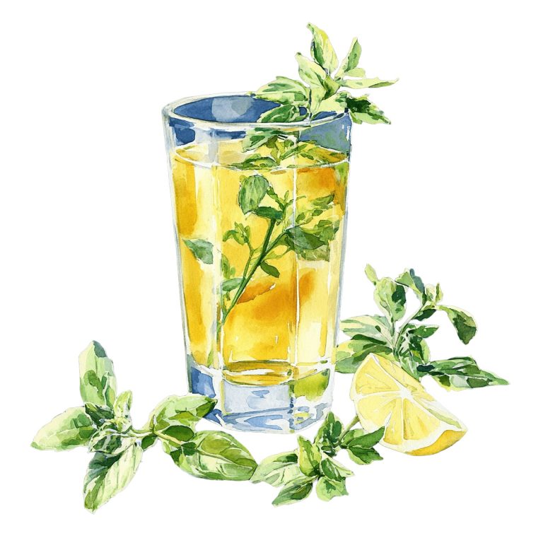 Glass of Mint Tea with Fresh Leaves and Lemon