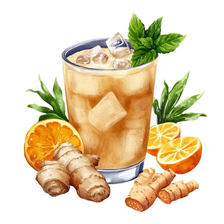 Glass of Iced Ginger Tea with Fresh Mint Leaves