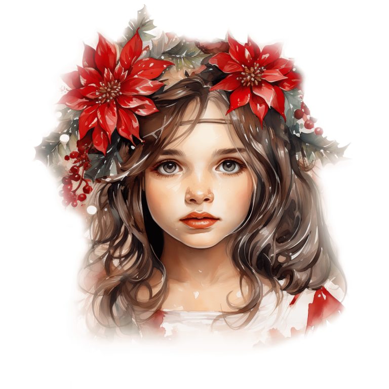 Portrait of a Young Girl with Poinsettia Headdress for Christmas Young girl with poinsettia and berry … Read more