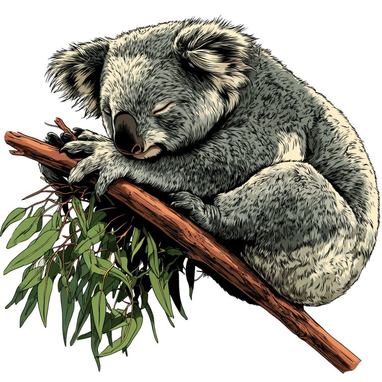Illustrated koala resting on a branch … Read more