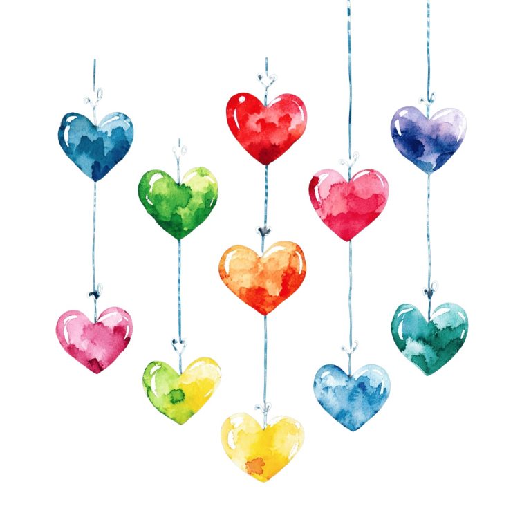 Colorful Heart Watercolor Clipart Hanging on Strings Vivid multicolored watercolor hearts hanging from … Read more