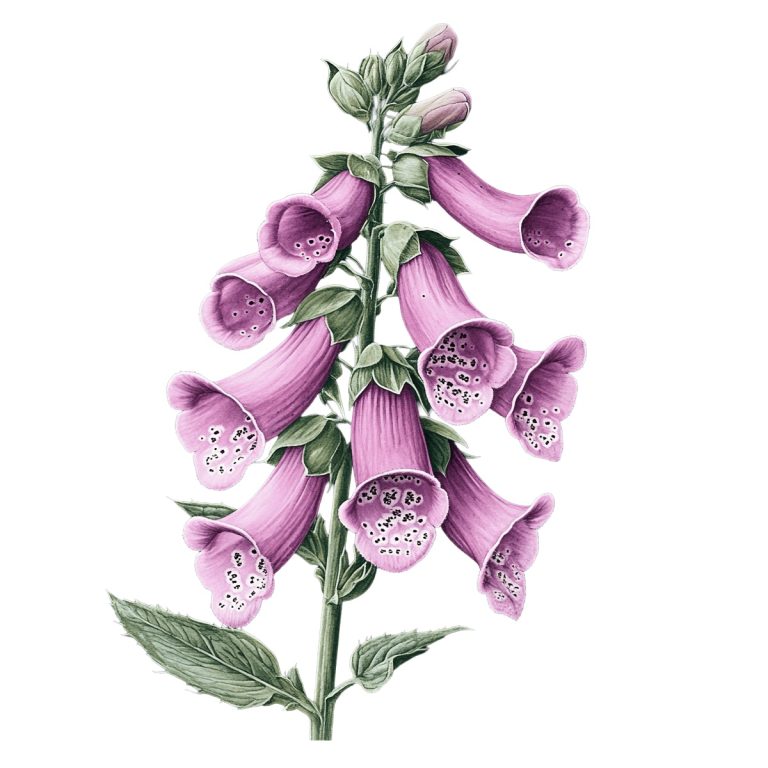 Pink Hibiscus Flower with Detailed Green Leaves Illustration