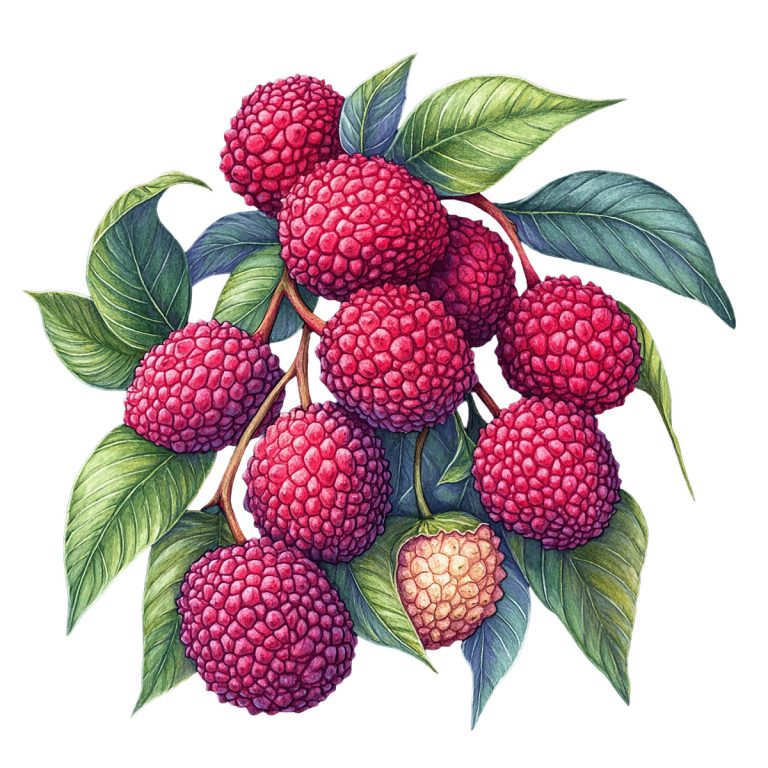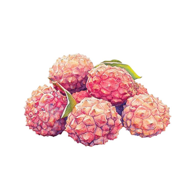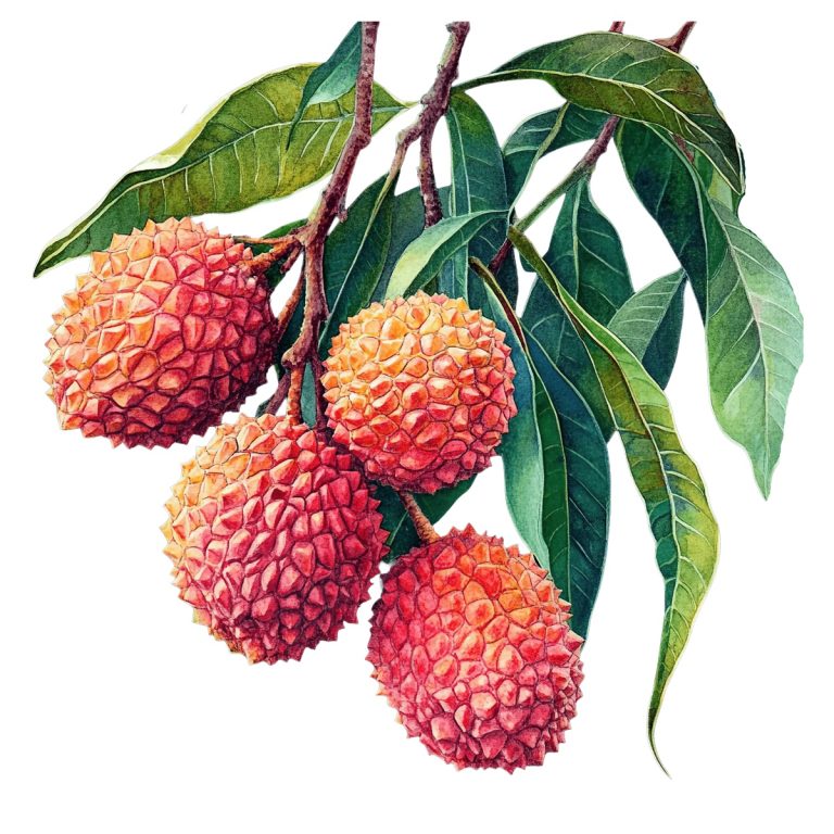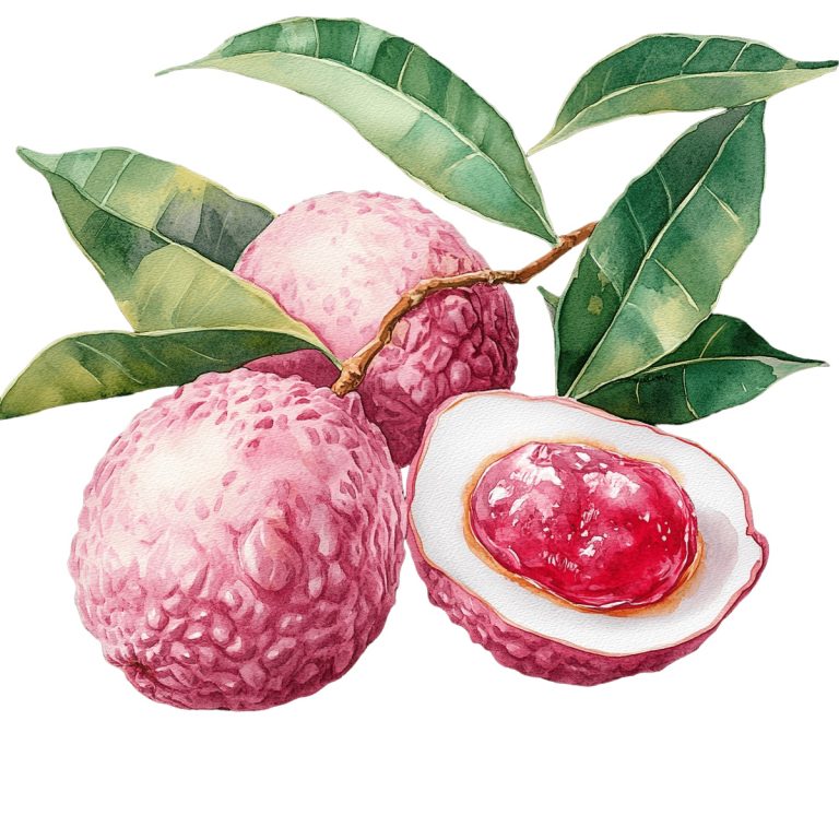Watercolor Lychee Fruits with Leaves and Opened Half Watercolor depiction of lychee fruits with … Read more