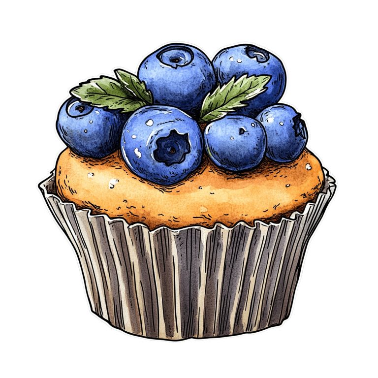 Watercolor Blueberry Muffin with Striped Paper Liner food dessert baked pastry clipart Blueberry muffin topped with fresh blueberries … Read more