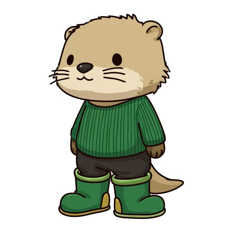 Otter in green sweater and boots clipart