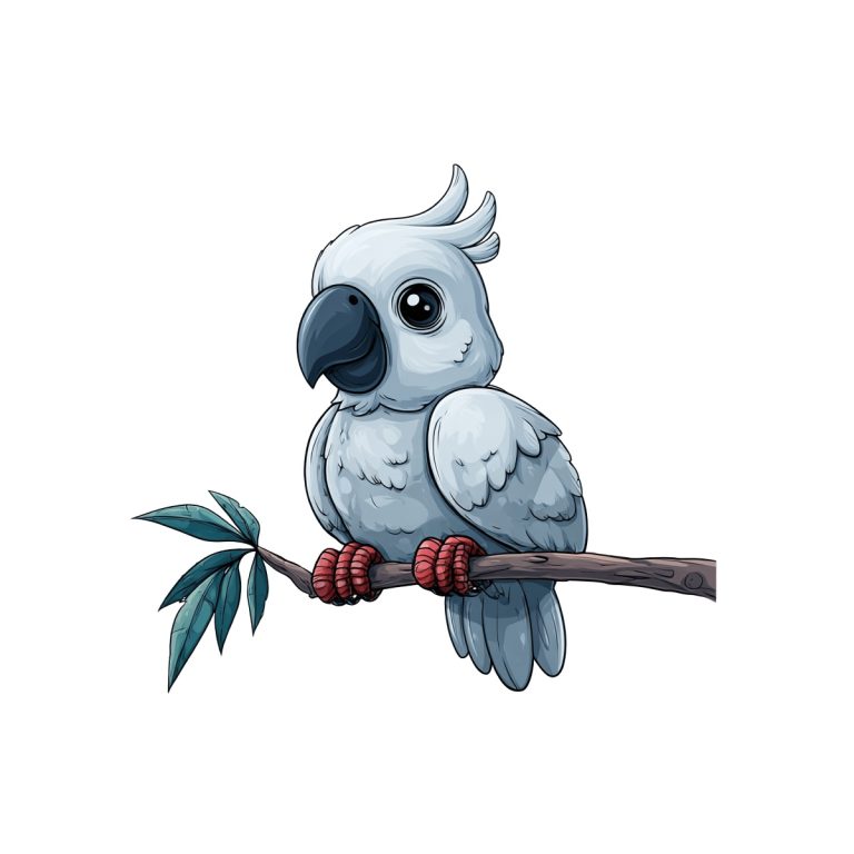 White Parrot Sitting on a Branch Clipart Illustration