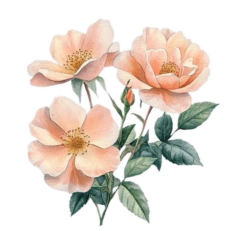 Peach-colored camellia flowers with green leaves peach botanical floral clipart vector art Peach camellia flowers surrounded by lush … Read more