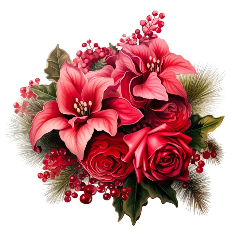 Elegant Red Floral Bouquet with Roses and Lilies Clipart