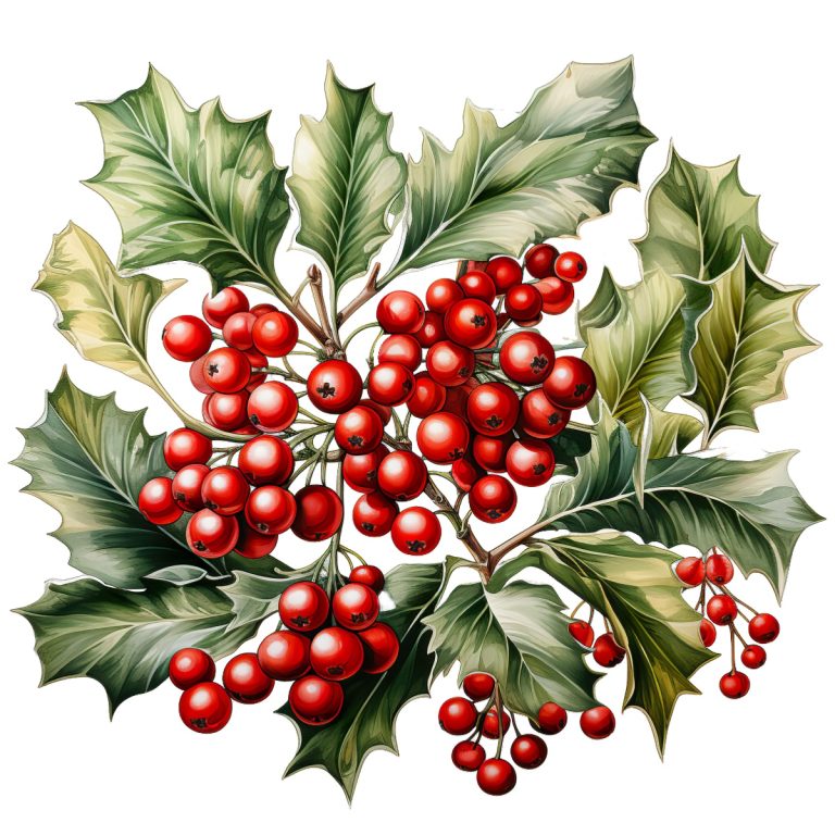 Traditional Holiday Holly with Red Berries and Green Leaves