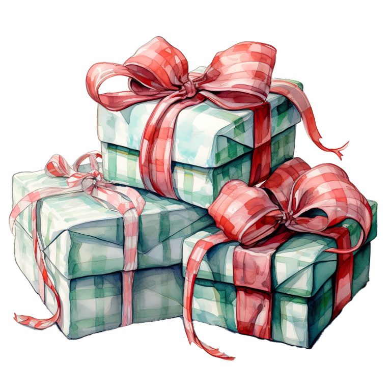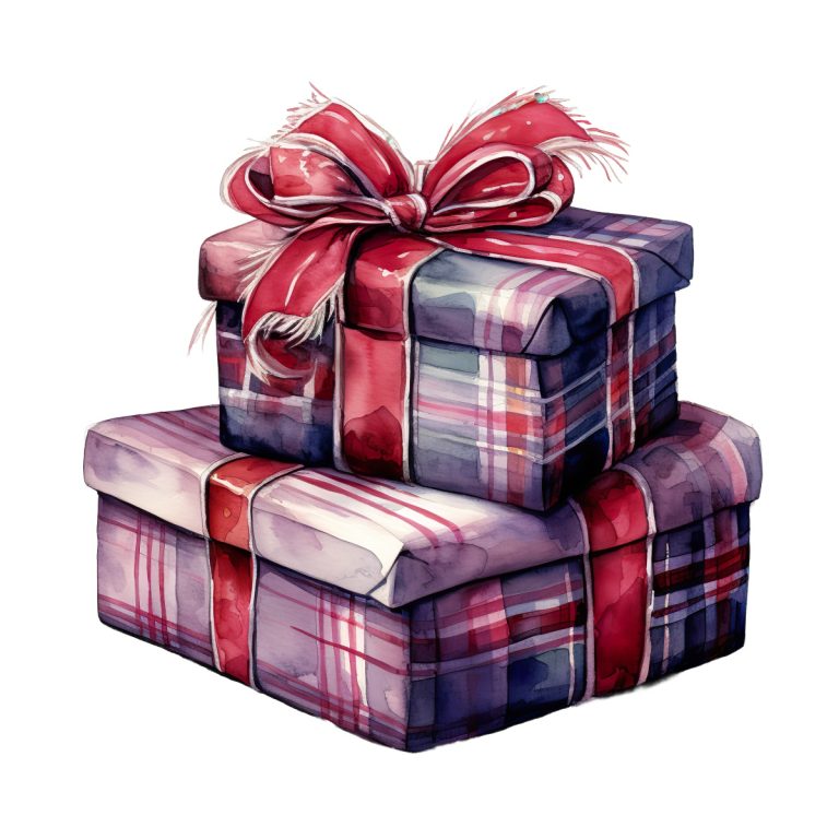 Plaid-patterned gift boxes stacked with decorative … Read more