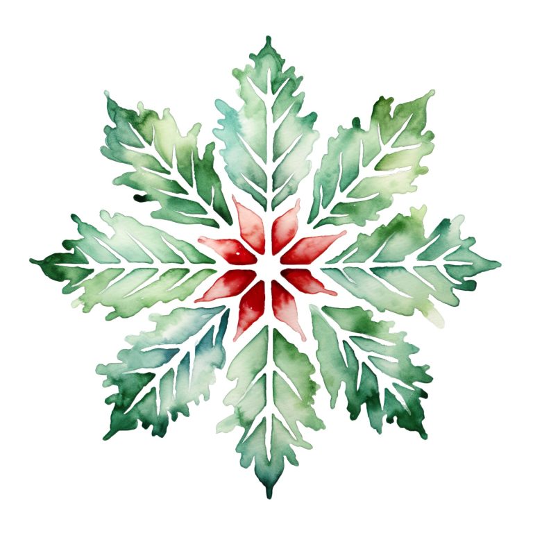 Festive Watercolor Snowflake with Red and Green Leaf Patterns Intricate watercolor snowflake featuring red and … Read more