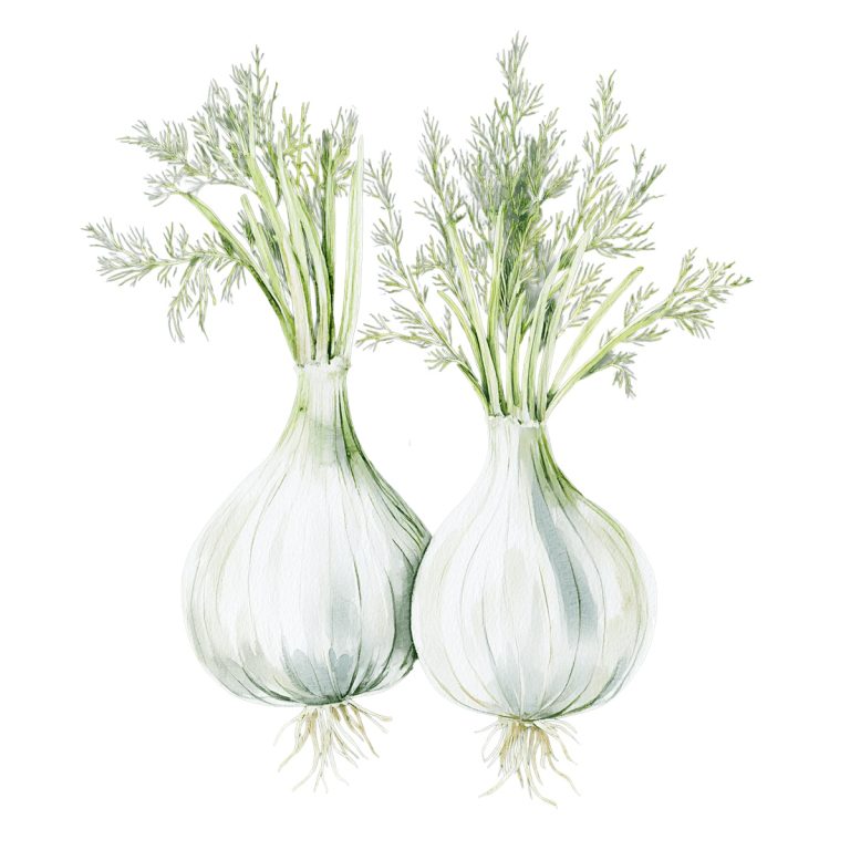 Watercolor Garlic Bulb with Green Stems clipart vegetable food spice herb vector