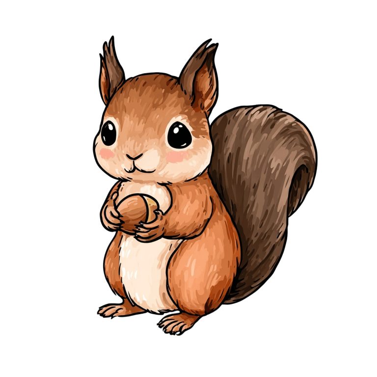 Orange squirrel illustration featuring large eyes … Read more