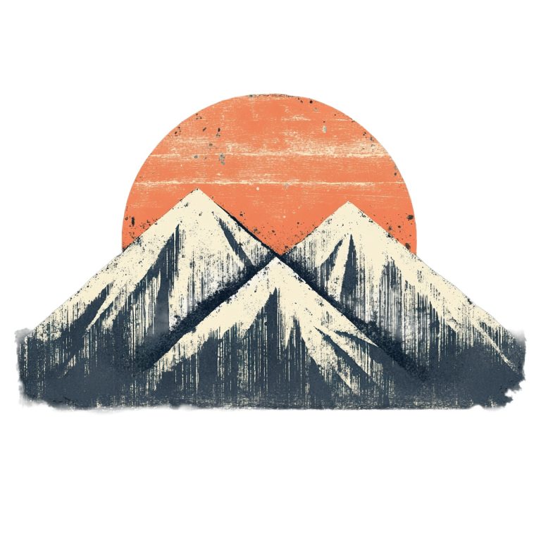 Vintage Mountain Illustration with Sun Rising in Distressed Style Distressed illustration of two snow-capped mountains … Read more