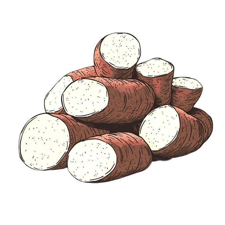 Cassava roots depicted with intricate texture … Read more