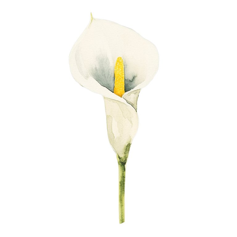Watercolor Illustration of a White Calla Lily on Black Background