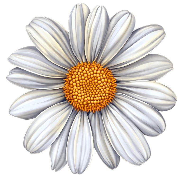 Detailed Clipart Illustration of a Single White Daisy Flower