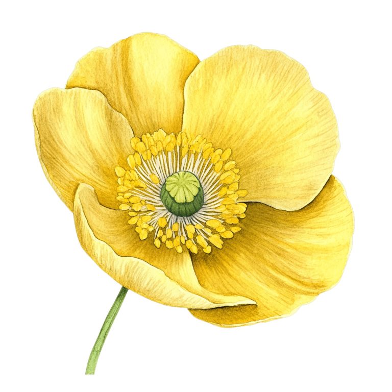 Detailed Illustration of a Yellow Flower with Green Stem