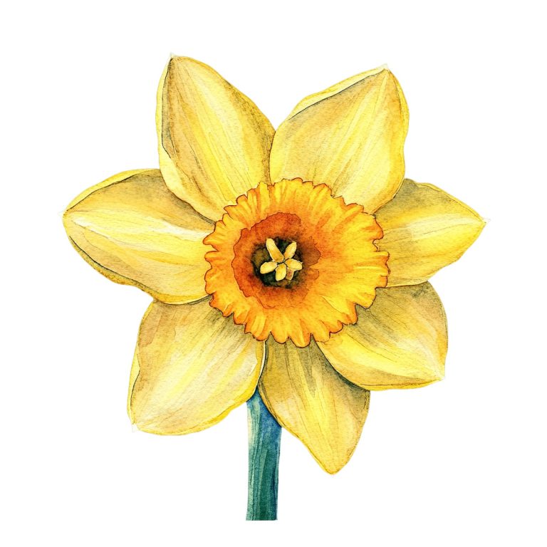 Yellow watercolor daffodil with vibrant petals … Read more